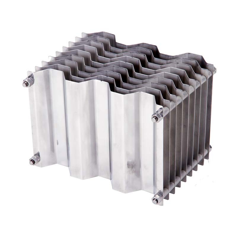 PlatePacks are phase separators (liquid-gas) of medium efficiency. Their construction consists of a set of very closely overlapping corrugated plates that form a sinuous passage for the gas stream.